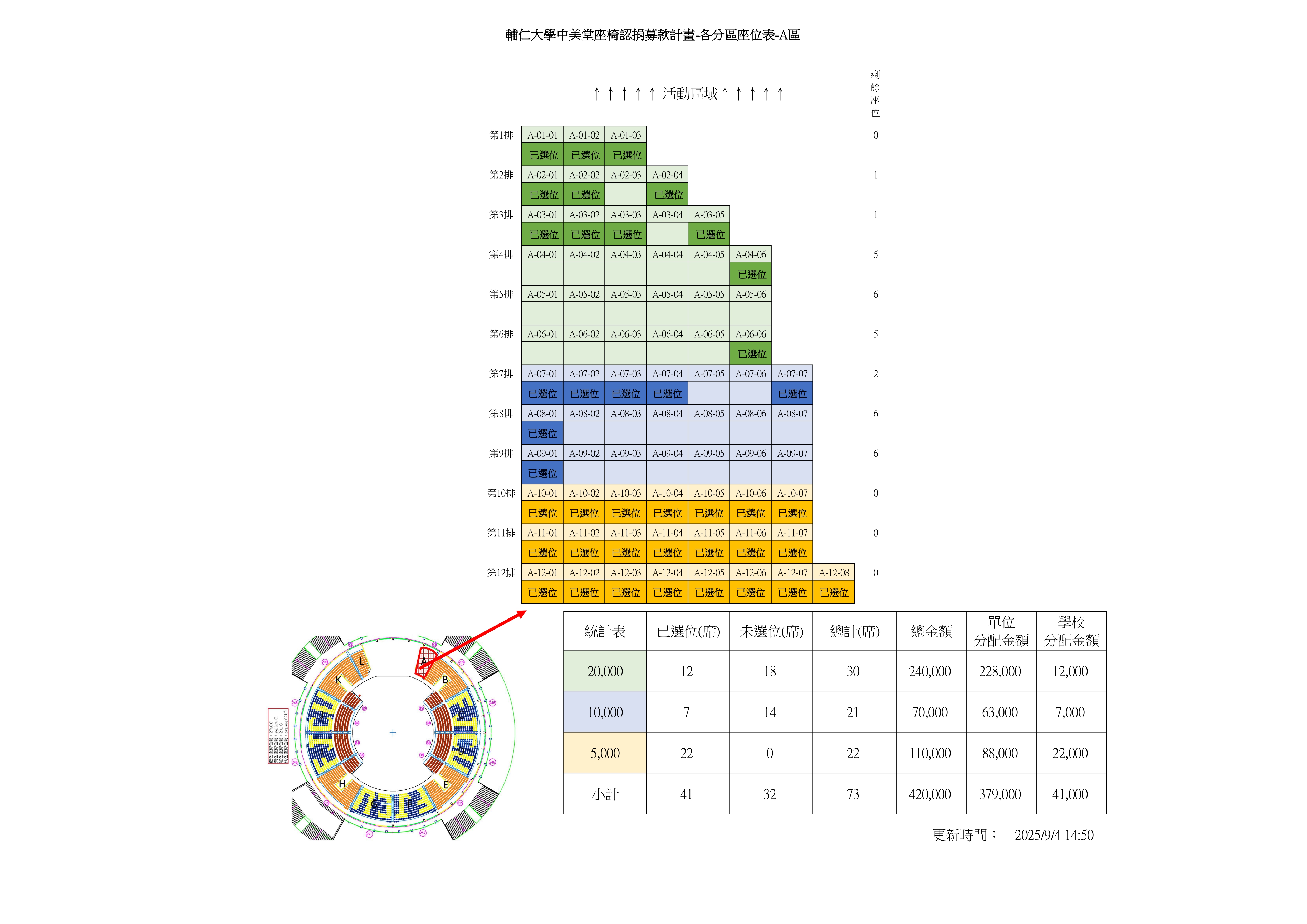 B區(織品服裝學院分區)選位現況表(點圖放大)