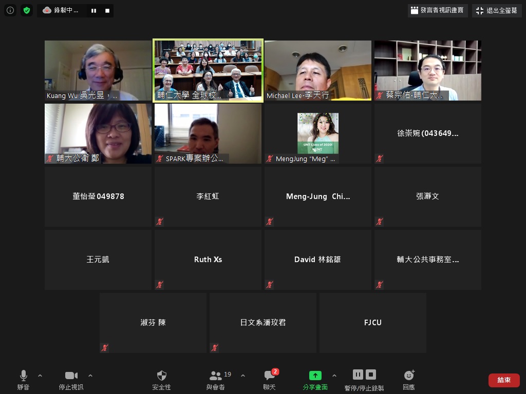 以遠距視訊的方式和本校教職同仁分享「簡易資金籌募」。
