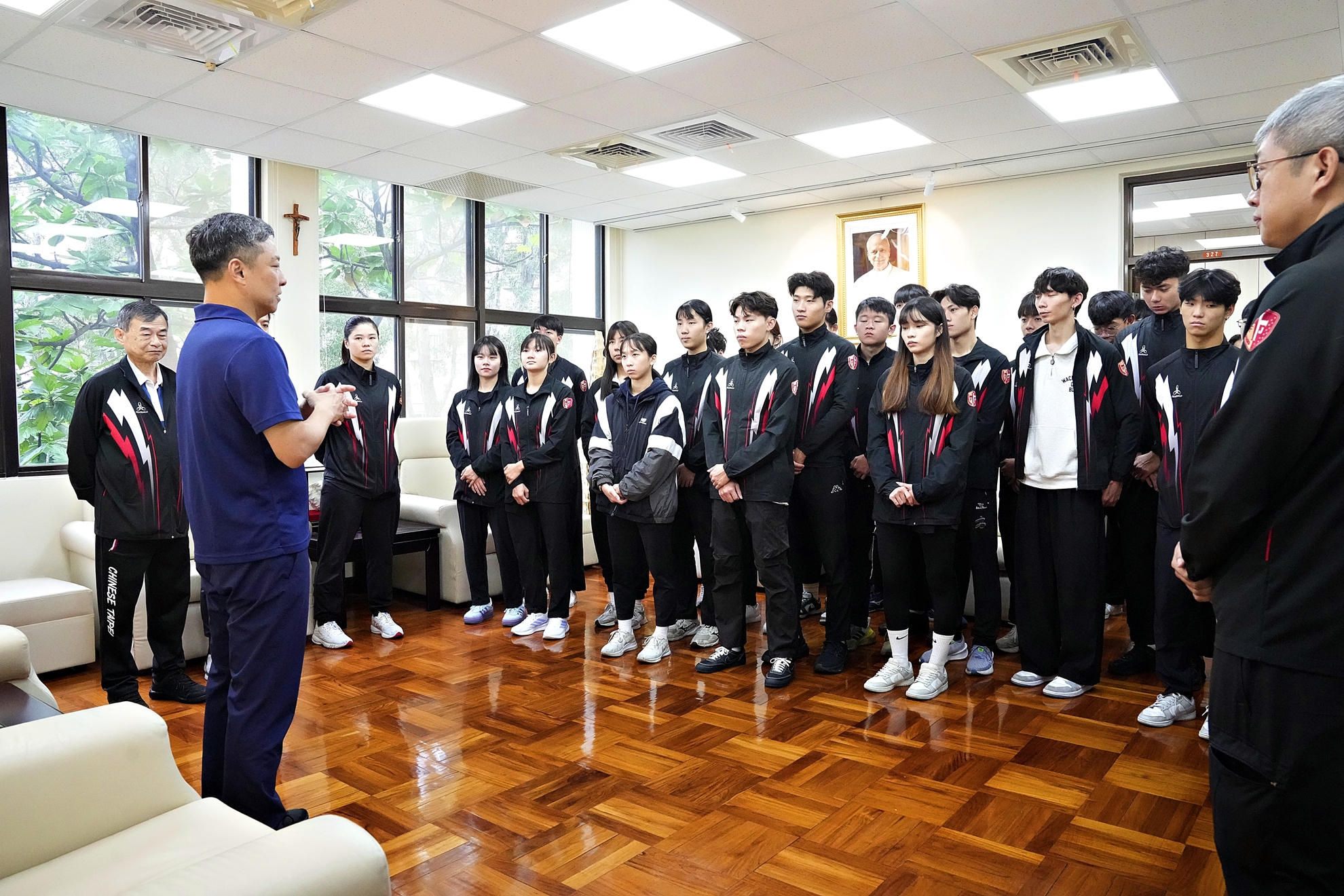 ▲校長向跆拳道隊分享跆拳道對他的重要影響。